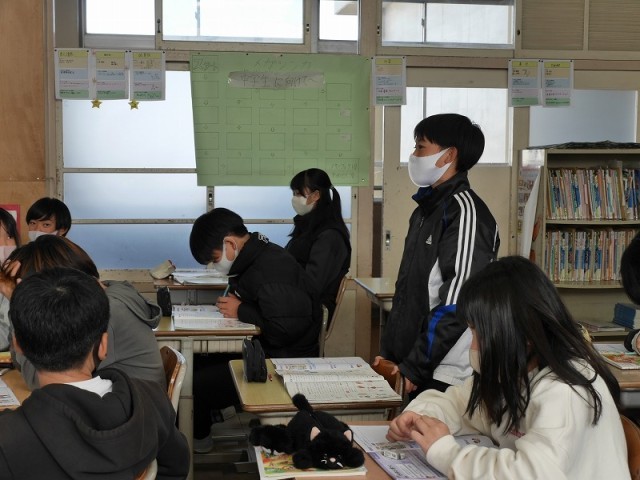 冬の住まいや暮らし方の工夫について、資料や自分の家庭生活を思い出して考えていました。