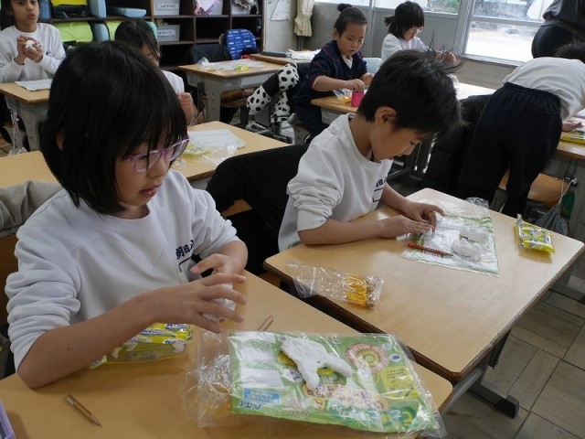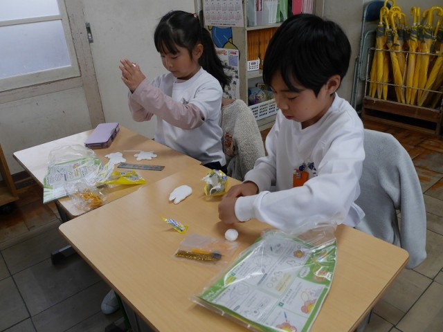 紙粘土でマグネットやキーホルダーを作る学習です。