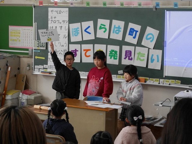 町探検で訪問した施設・事業所についてグループで発表しました。