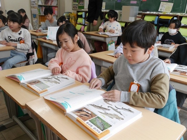 1年国語 公開日 2026/02/05 更新日 2026/02/05 各学年から 中央図書館から講師の先生をお招きして動物図鑑を使った調べ方について学習しました。目次や索引を上手に活用すると目的の動物の記事をすばやく見つけることができることを学びました。 1年