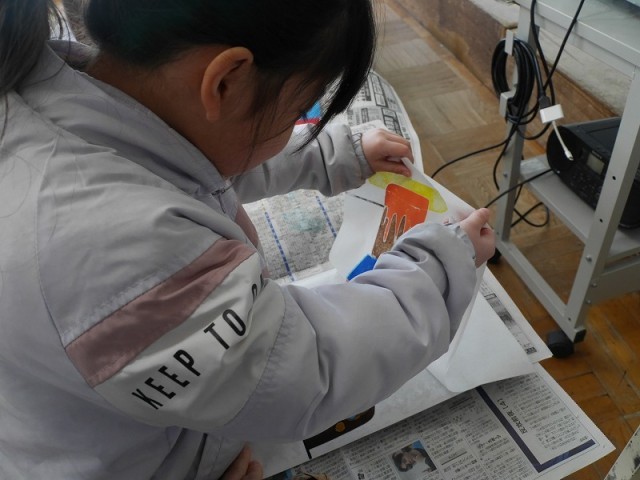 しっかりこすって色が移ったら、版画用紙を慎重にはがしてできあがりです。