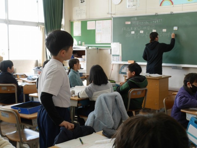 帯分数を仮分数に直す学習のまとめの練習問題に取り組んでいました。