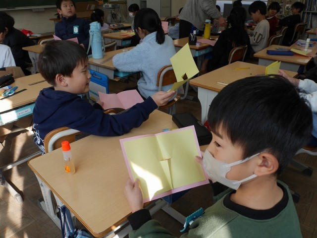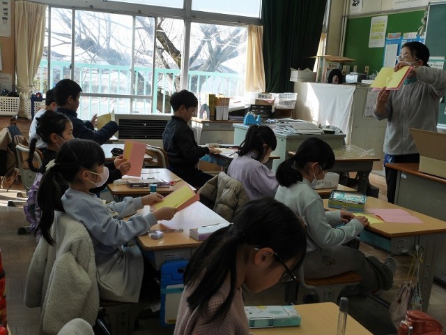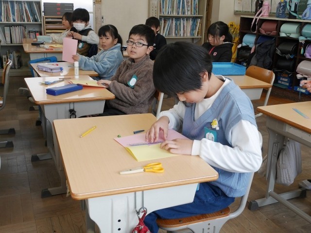 6年生を送る会に向けて、感謝を伝えるカードを作りました。