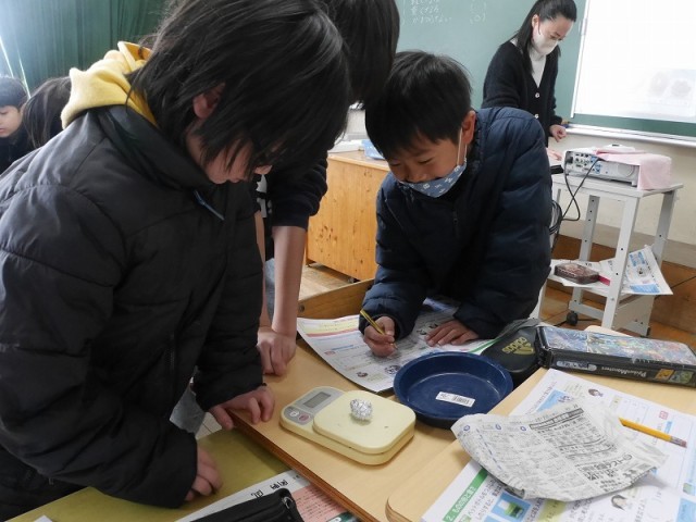 物は形が変わると重さも変わるのか、予想を立てた上で実際に計りで計ってみました。
