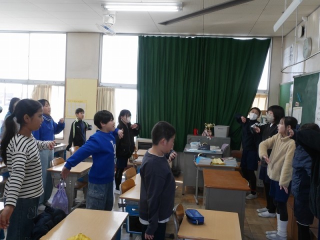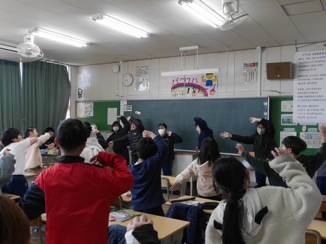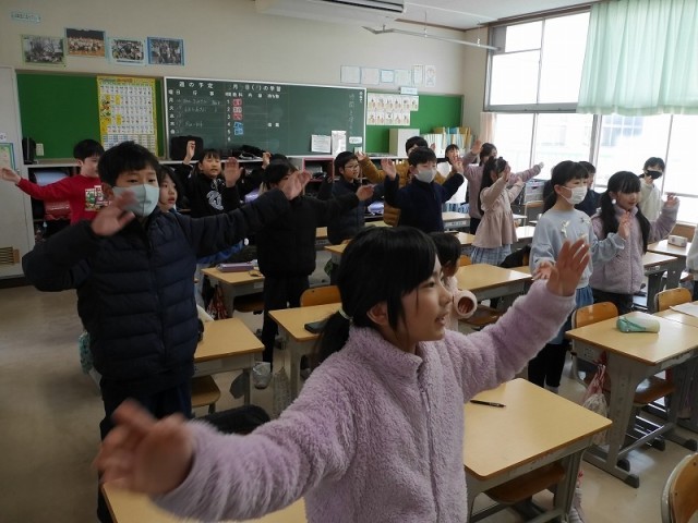 朝の会の時間に5年生が各学年の教室に出向いて6年生を送る会の歌の練習をしました。