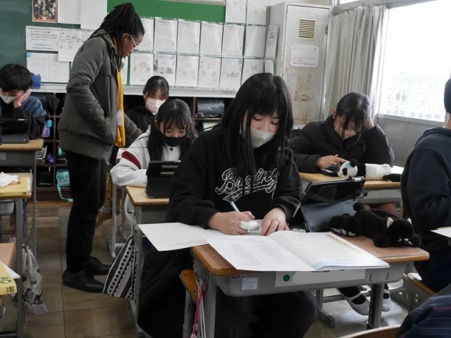 「My best memory」をテーマに、心に残ったことをみんなに英語で伝えるための原稿づくりをしていました。