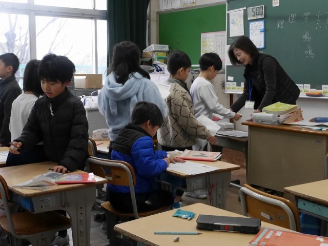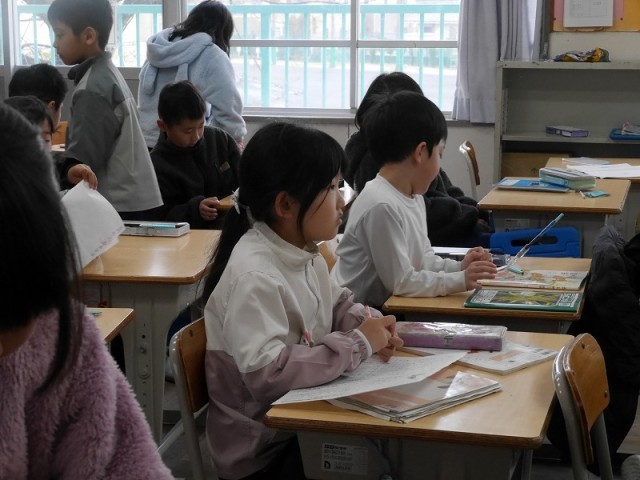 間違えた問題を直して先生に提出していました。
