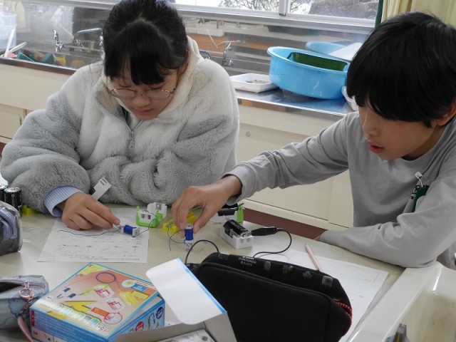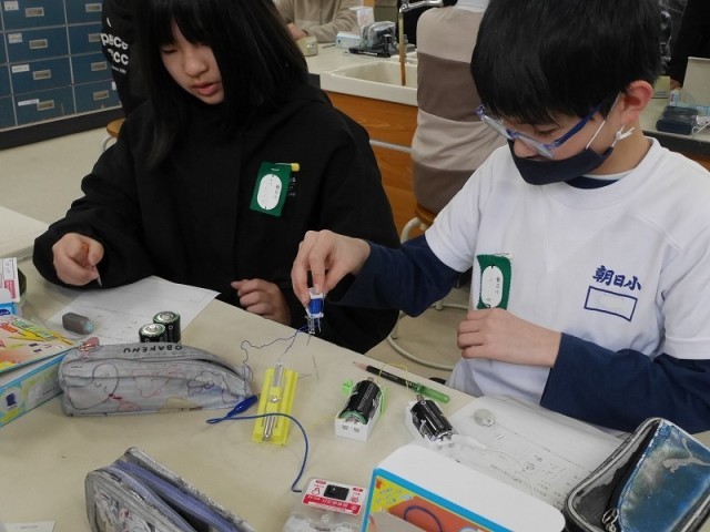 今日は、電池の数を増やしたら磁力が大きくなるかどうかの実験をしていました。