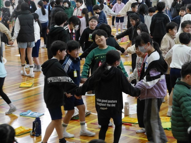 最後には6年生も交えて縦割り班で踊りました。