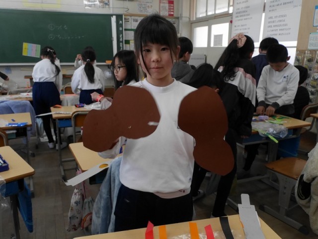 画用紙をわっか状にして身に着ける工作です。