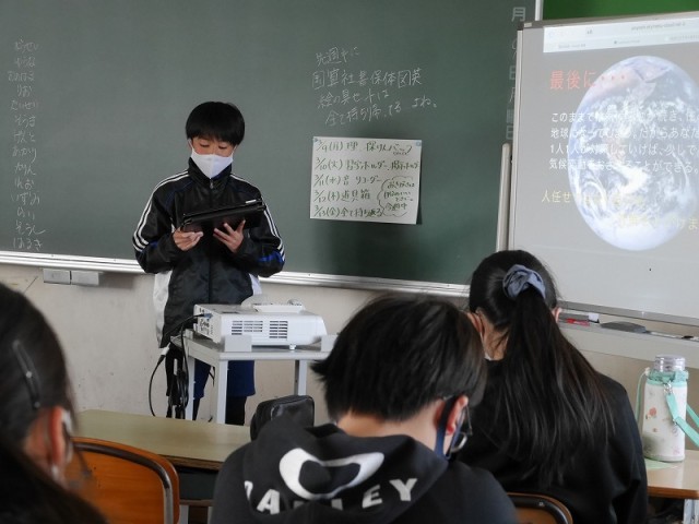 SDG’sについて調べてまとめたことを発表していました。