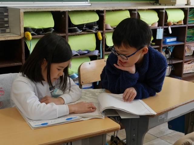 「なつかしい!」といいながら入学したての頃のワークシートを見せ合っていました。