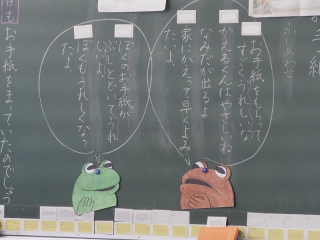 後半は「おてがみ」の続きで、がまくんとかえるくんの気持ちを考えました。