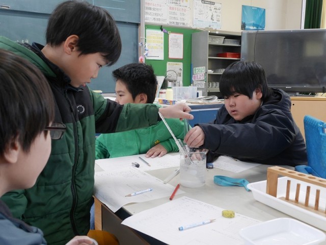 前回までの、水を熱したときとは逆に、水を冷やしたときの変化について確かめていました。