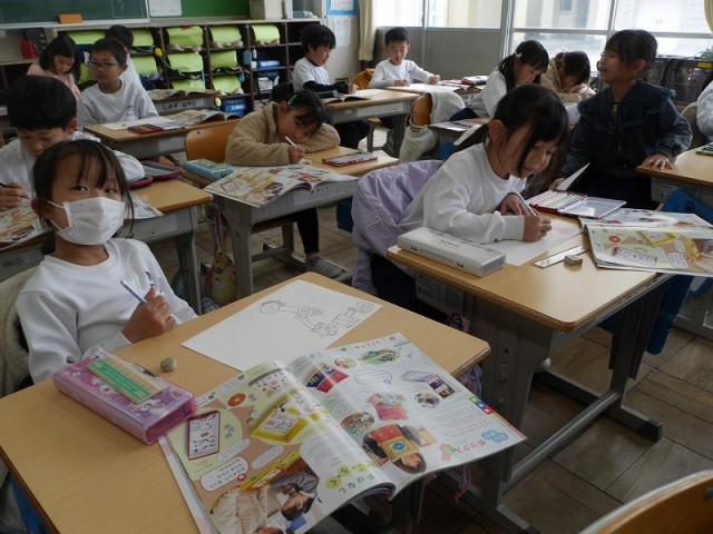 お話を考え、それに沿ったすごろくを作っていました。
