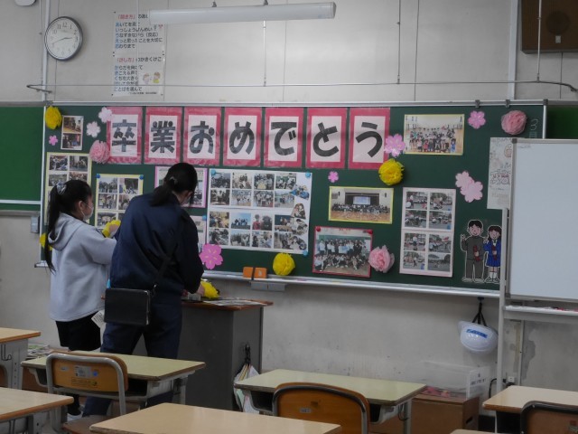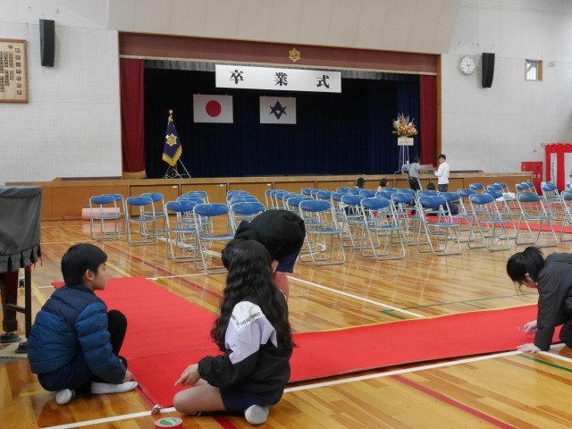 4・5年生が卒業式の準備を行いました。