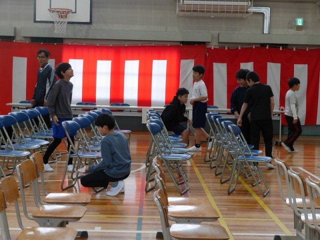 新6年生が登校して入学式・始業式の準備をしてくれました。