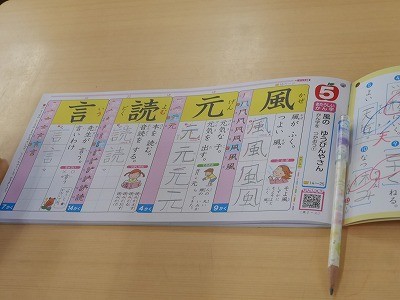 何回も指で筆順を確かめながら漢字ドリルに記入していました。
