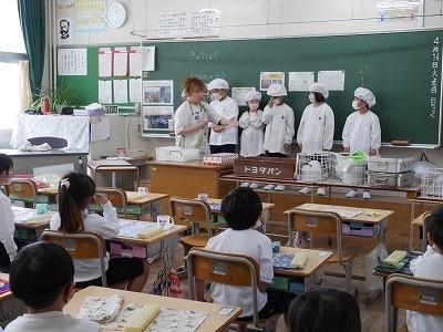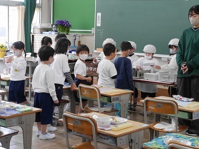 「小学校の給食おいしいよ~!」笑顔がたくさん見られました。
