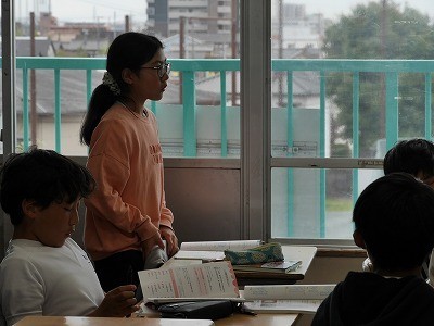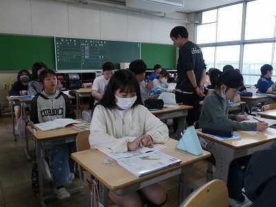 二つの図形の対応する点、辺、角などについて確認していました。