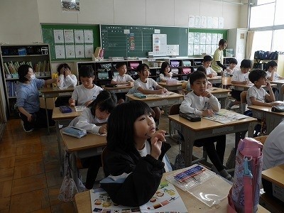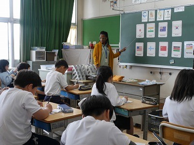 ALTの先生の発音をまねて、いろいろな国の名前を英語で言っていました。