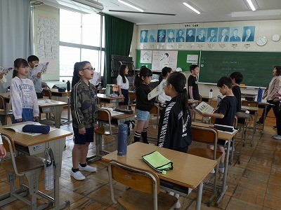 おなじみの曲を二つのグループに分かれて歌いました。