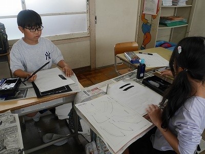 1年間の最初の授業なので、「はね、とめ、はらい」などの基本的な書き方を復習しました。