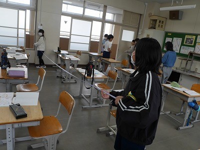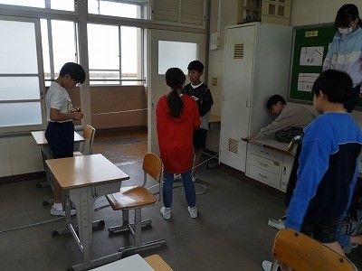 みんなで教室の寸法を測っていました。