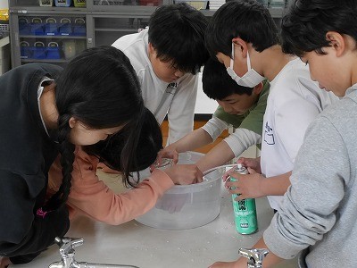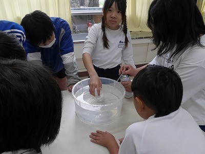 二酸化炭素や窒素の中にろうそくの火を入れると火がどうなるかを確かめる実験でした。
