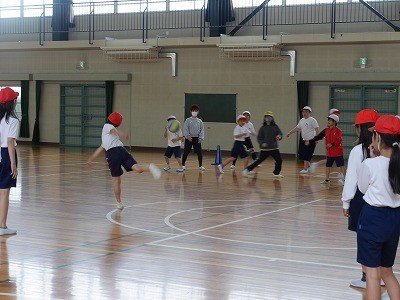 授業が早く進んだので、残り時間でドッジボールを行いました。