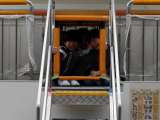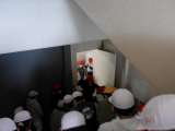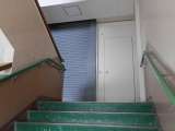防火扉が閉まった階段は踊り場も狭くなります。 2階と3階から階段を通る児童が交錯...