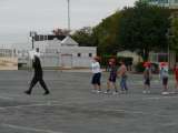 避難場所の運動場に出たら人員確認の点呼を行います。 今日は行方不明者なしで全員無...