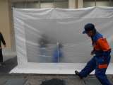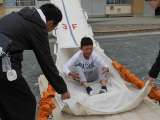 5・6年生は校舎3階から救助袋で滑り降りる訓練を行いました。 朝日小の5・6年生...