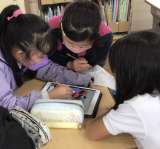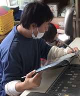 朝日のあゆみ調査隊。ipadも使って調べたり、まとめたりしています。