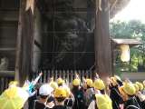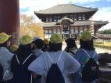 ガイドボランティアの方と一緒に大仏殿を見学中。とても深い話でいっぱいです