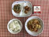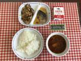 今日の給食は、『ごはん、じゃがいもとツナのうま煮、磯香あえ、愛知の野菜入り肉だん...