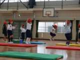 マット運動の学習です。 マットとマットの間をじょんぷで跳び越える運動をしていまし...