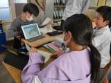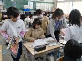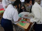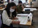 出来上がった読書感想画を互いに鑑賞して、友達の作品のよかったところをメモしていま...