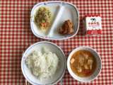 今日の給食は、『ごはん、キムチスープ、中華サラダ、とり肉から揚げ、牛乳』です。 ...
