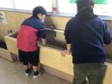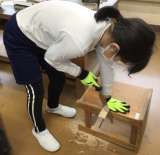 4年生が図画工作の授業「ギコギコ トントン クリエイター」で、のこぎりをひいた...