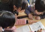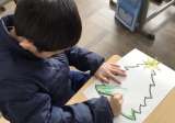 2年生が、生活科で探検した事のまとめをしていました。