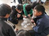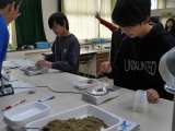 はかりで土を5g文正確に計れたら次の人に交代するというゲームをしていました。 子...