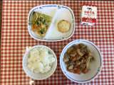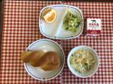 今日の給食は、『ごはん、ひきずり、おかかあえ、厚焼き卵、牛乳』です。 下の数字は...