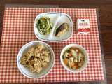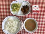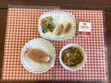 今日の給食は、『米粉パン、焼きそば、ナムル、ぎょうざ、牛乳』です。 下の数字は、...