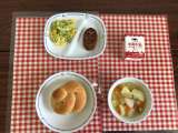 今日の給食は、『りんごパン、ポトフ、コーンサラダ、ハンバーグ、牛乳』です。 下の...