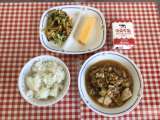 今日の給食は、『ごはん、ピリット厚揚げ、バンバンジー、大学いも、牛乳』です。 下...
