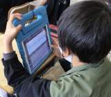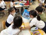 朝日小学校の学区の地図を作成しています。 みんな楽しそうにipadを使って朝日の...