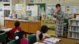 1年生が図書館の使い方を勉強しました。学校図書館司書が、スタートブックを使って...