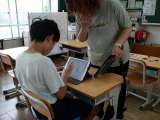 学習用タブレットを使って撮影してきた写真を見せ合いながら交流しました。