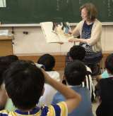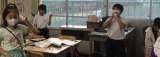 図書室で授業があったので、会議室で活動していただきました。絵本のラベルの小さな...